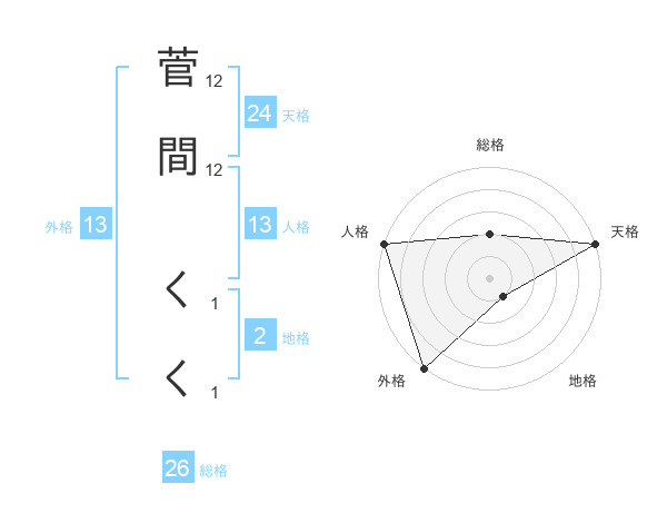 菅間 くくさんの天格は24画の5点!