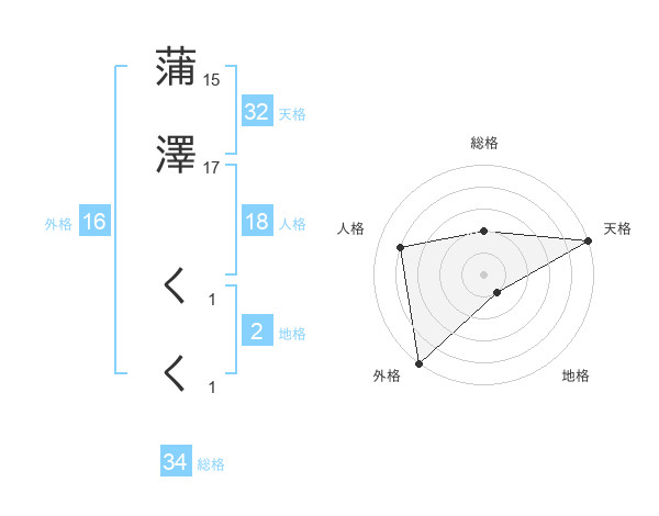 蒲澤 くくさんの天格は32画の5点!