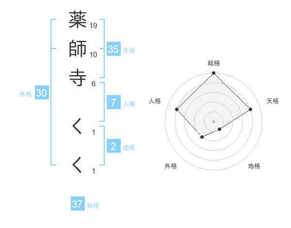 薬師寺 くくさんの総格は37画の5点!