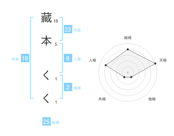 藏本 くくさんの総格は25画の4点!