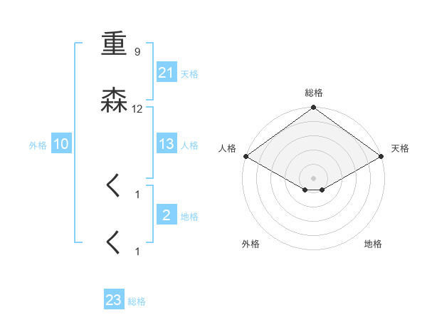 重森 くくさんの天格は21画の5点!