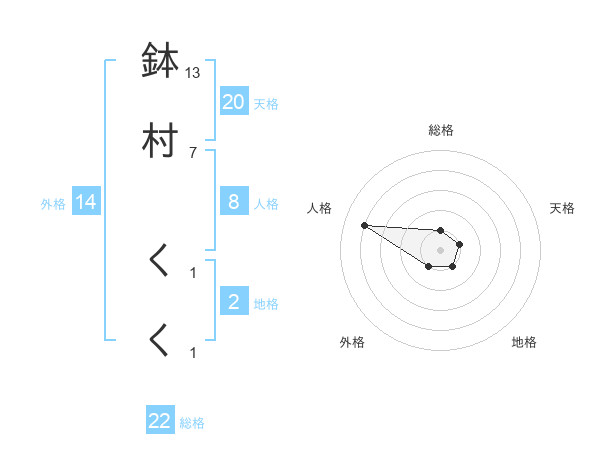 鉢村 くくさんを姓名の画数から五運を鑑定
