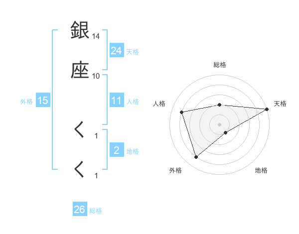 銀座 くくさんの総格は26画の2点!