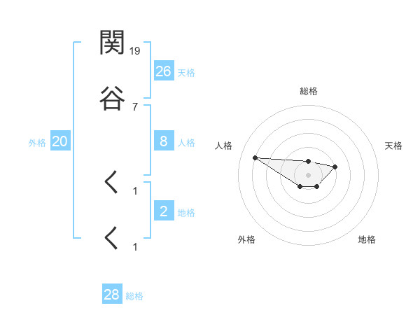 関谷 くくさんの総格は28画の1点!