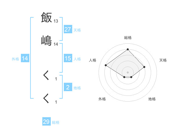 飯嶋 くくさんを姓名の画数から五運を鑑定