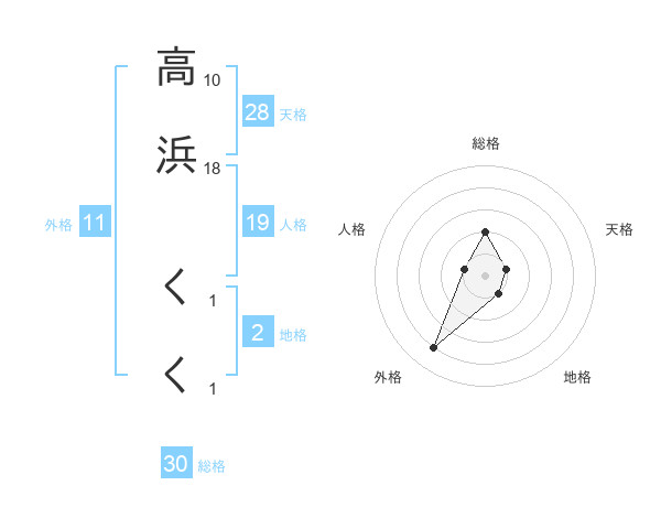 高浜 くくさんの総格は30画の2点!