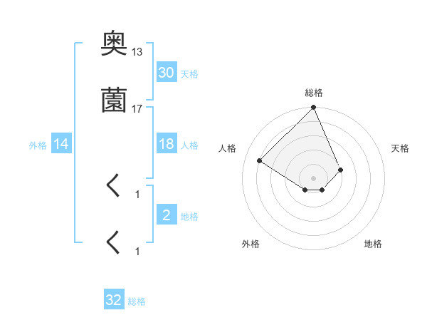 奥薗 くくさんを姓名の画数から五運を鑑定