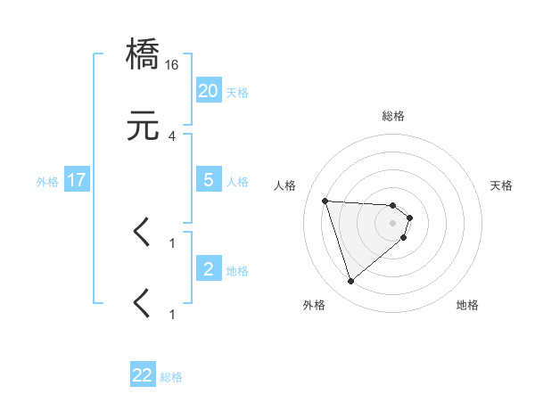 橋元 くくさんの外格は17画の4点!