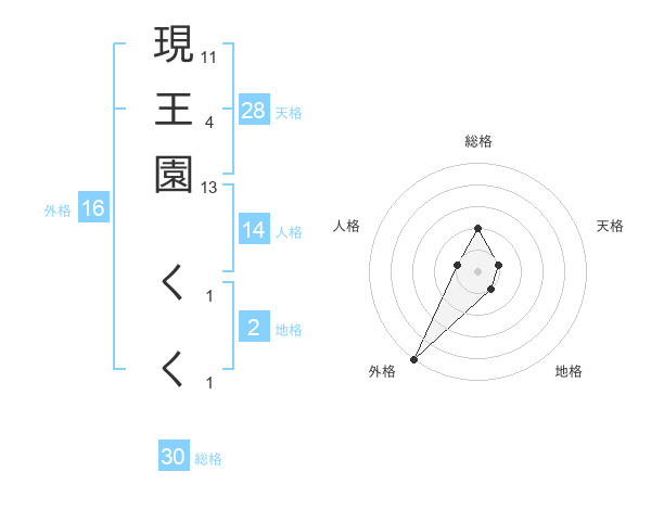 現王園 くくさんの総格は30画の2点!