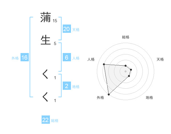 蒲生 くくさんの外格は16画の5点!