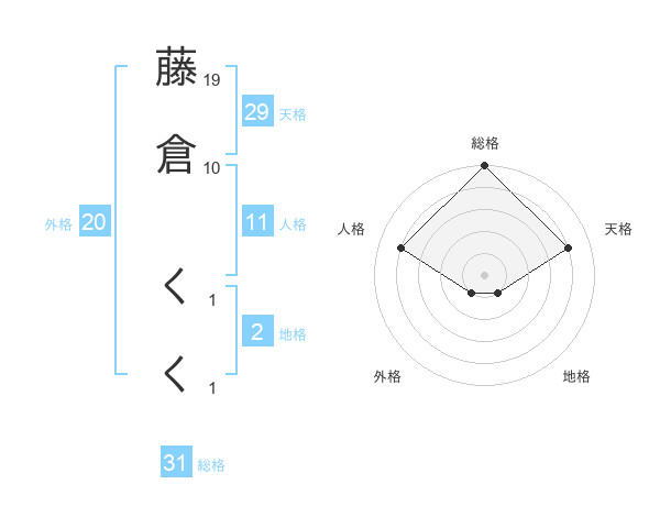 藤倉 くくさんを姓名の画数から五運を鑑定