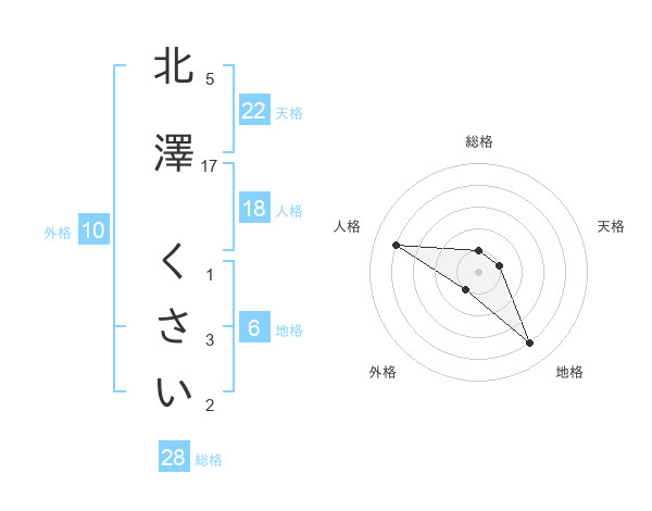 北澤 くさいさんを姓名の画数から五運を鑑定
