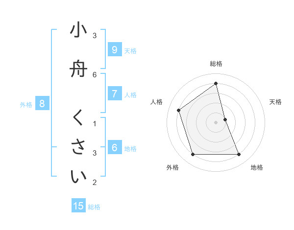 小舟 くさいさんの総格は15画の4点!