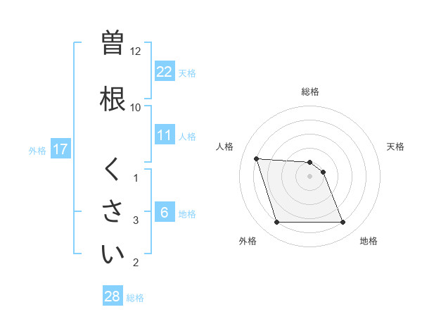 曽根 くさいさんを姓名の画数から五運を鑑定