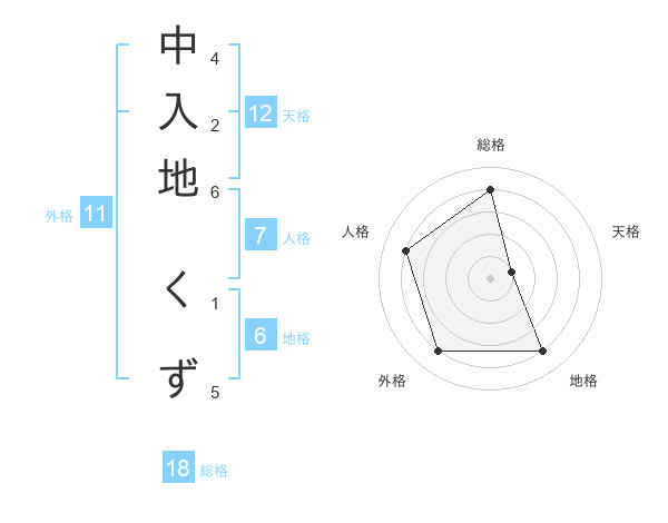中入地 くずさんの総格は18画の4点!