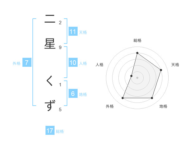 二星 くずさんの総格は17画の4点!