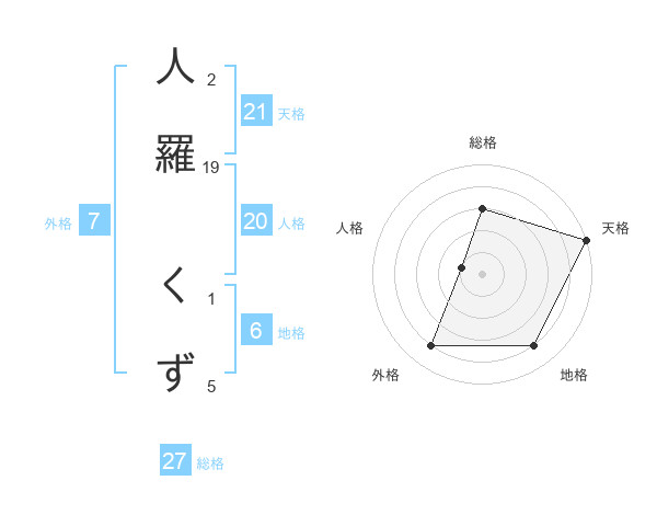 人羅 くずさんの総格は27画の3点!