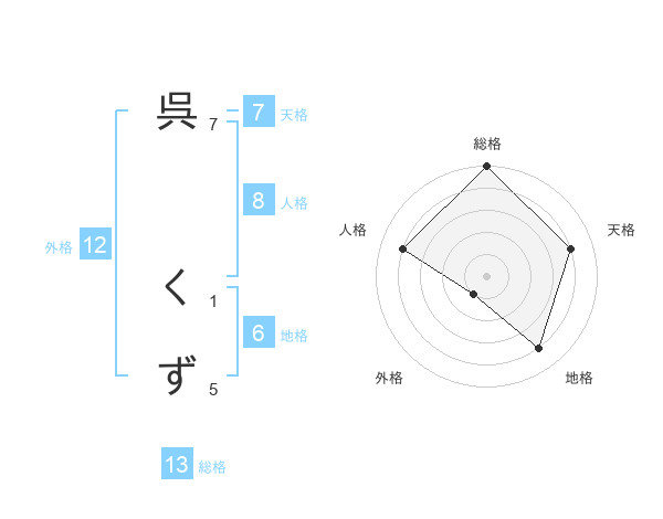 呉 くずさんの総格は13画の5点!