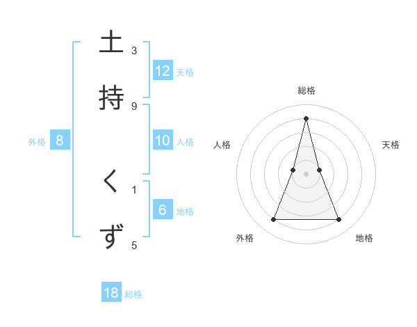 土持 くずさんの外格は8画の4点!
