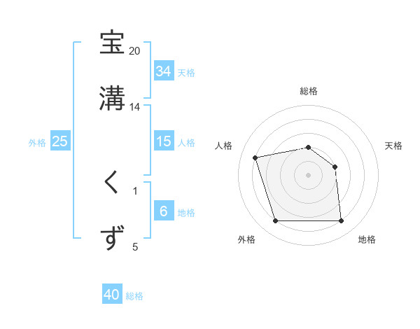 宝溝 くずさんの総格は40画の2点!