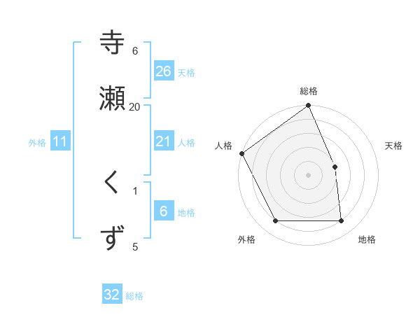 寺瀬 くずさんの総格は32画の5点!