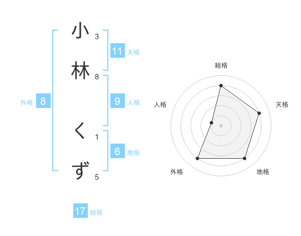 小林 くずさんの総格は17画の4点!