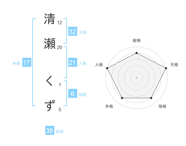 清瀬 くずさんを姓名の画数から五運を鑑定