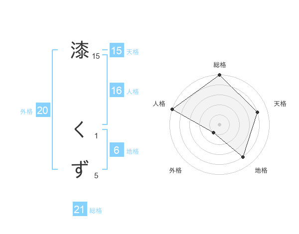 漆 くずさんの総格は21画の5点!