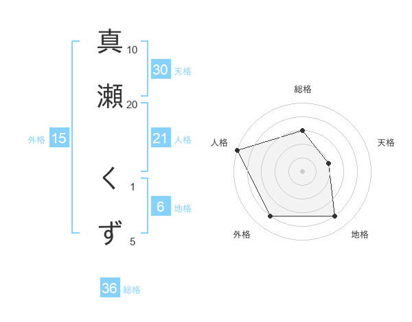 真瀬 くずさんの天格は30画の2点!