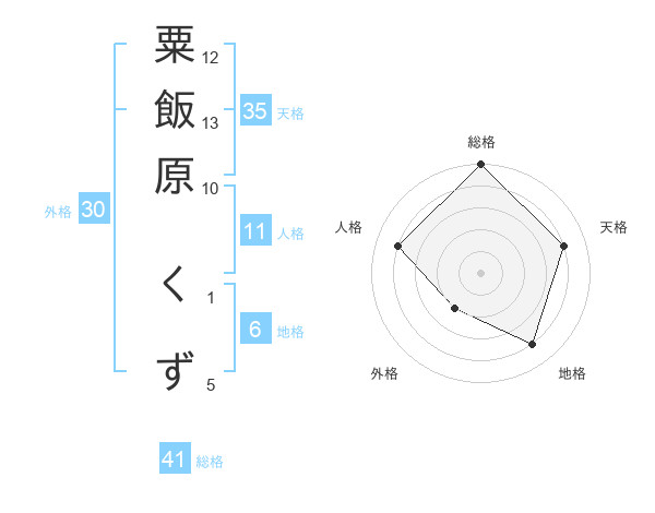 粟飯原 くずさんを姓名の画数から五運を鑑定