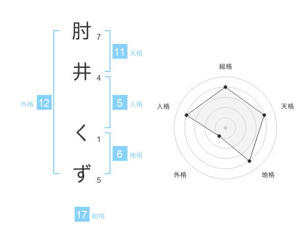 肘井 くずさんの総格は17画の4点!