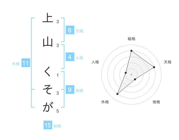 上山 くそがさんの天格は6画の4点!