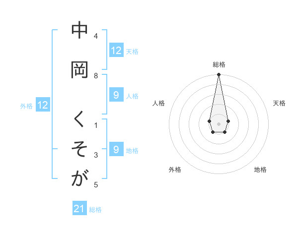 中岡 くそがさんを姓名の画数から五運を鑑定