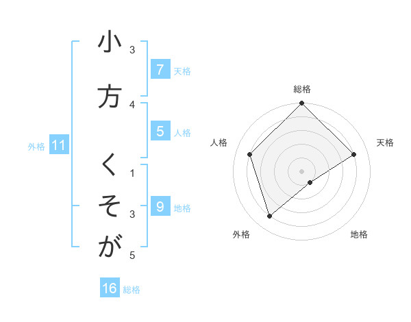 小方 くそがさんの総格は16画の5点!
