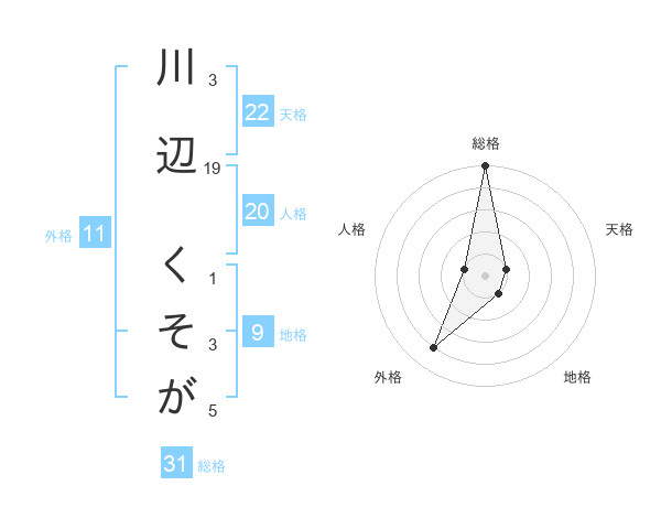 川辺 くそがさんを姓名の画数から五運を鑑定