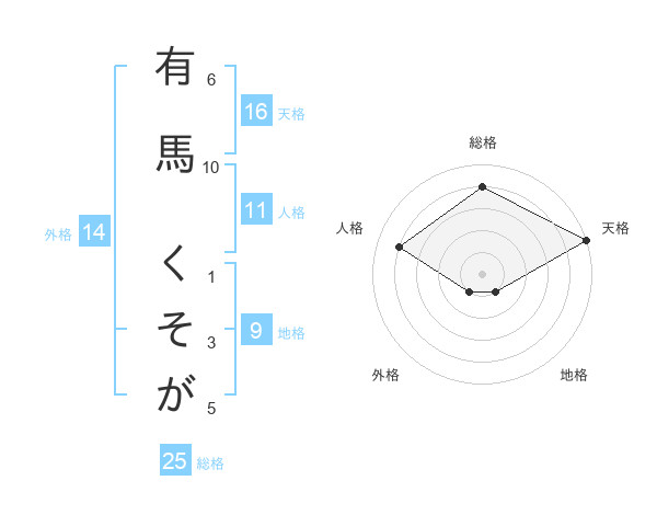 有馬 くそがさんを姓名の画数から五運を鑑定