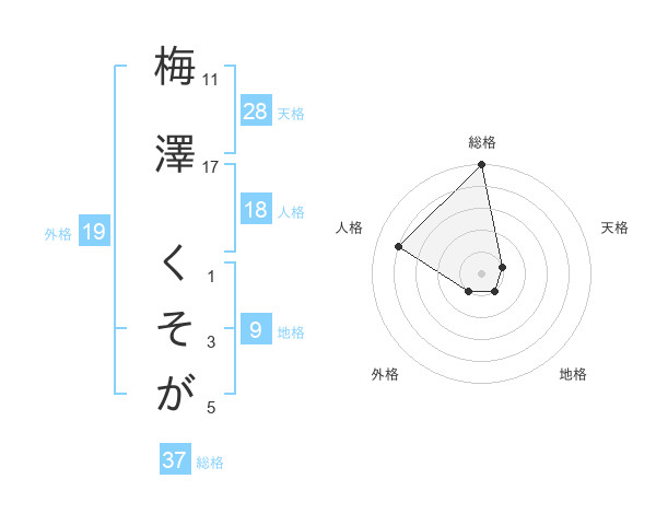 梅澤 くそがさんの総格は37画の5点