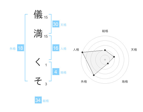 儀満 くそさんの天格は30画の2点!