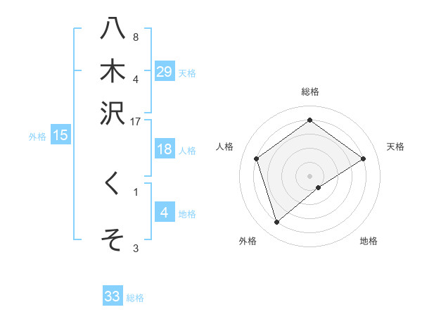八木沢 くそさんの総格は33画の4点!