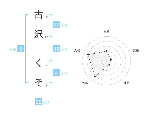 古沢 くそさんの外格は8画の4点!