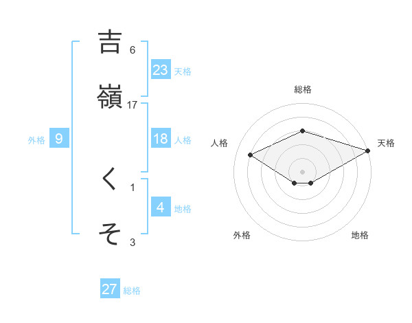 吉嶺 くそさんの総格は27画の3点!