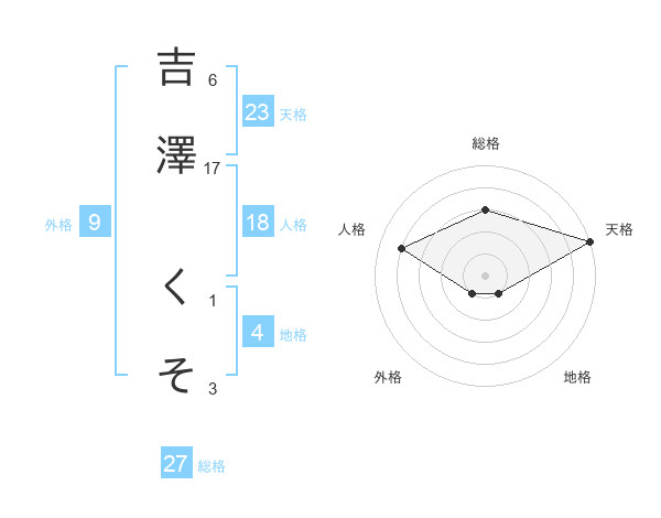 吉澤 くそさんを姓名の画数から五運を鑑定