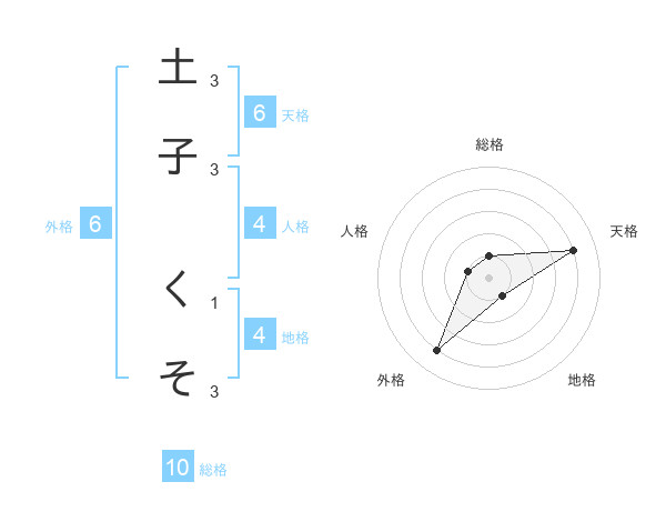 土子 くそさんの総格は10画の1点!