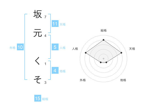 坂元 くそさんの天格は11画の4点!