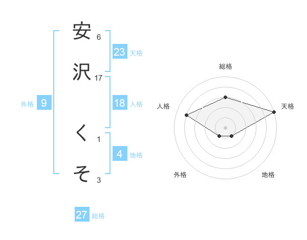 安沢 くそさんの天格は23画の5点!