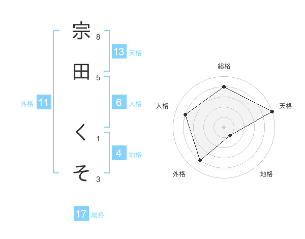 宗田 くそさんの天格は13画の5点!