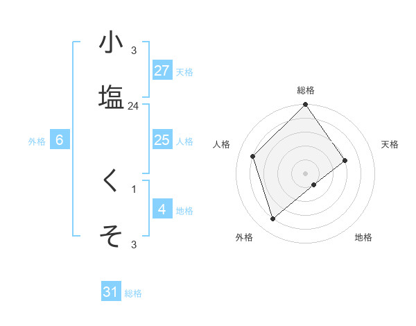 小塩 くそさんの総格は31画の5点!
