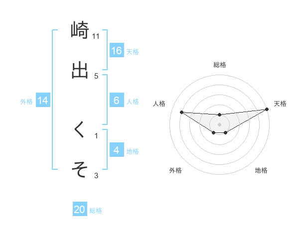 崎出 くそさんの総格は20画の1点!
