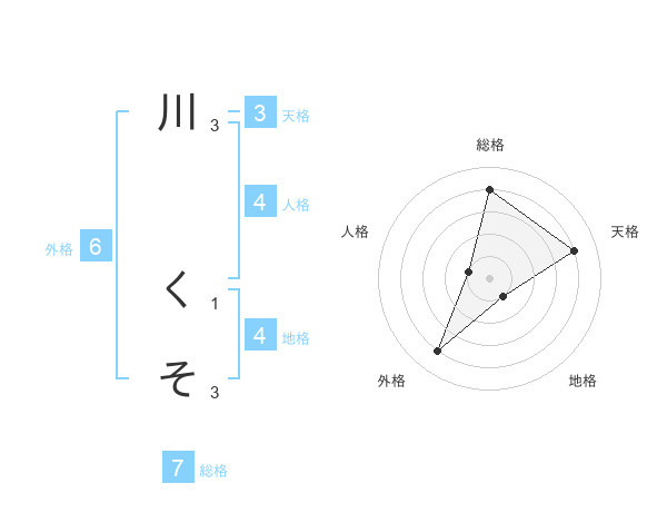 川 くそさんの総格は7画の4点!