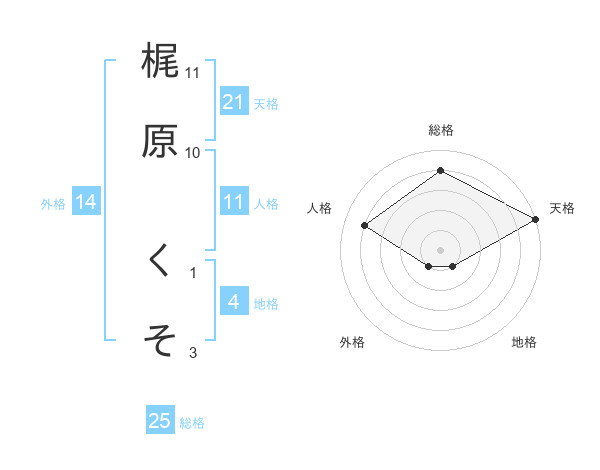 梶原 くそさんの天格は21画の5点!